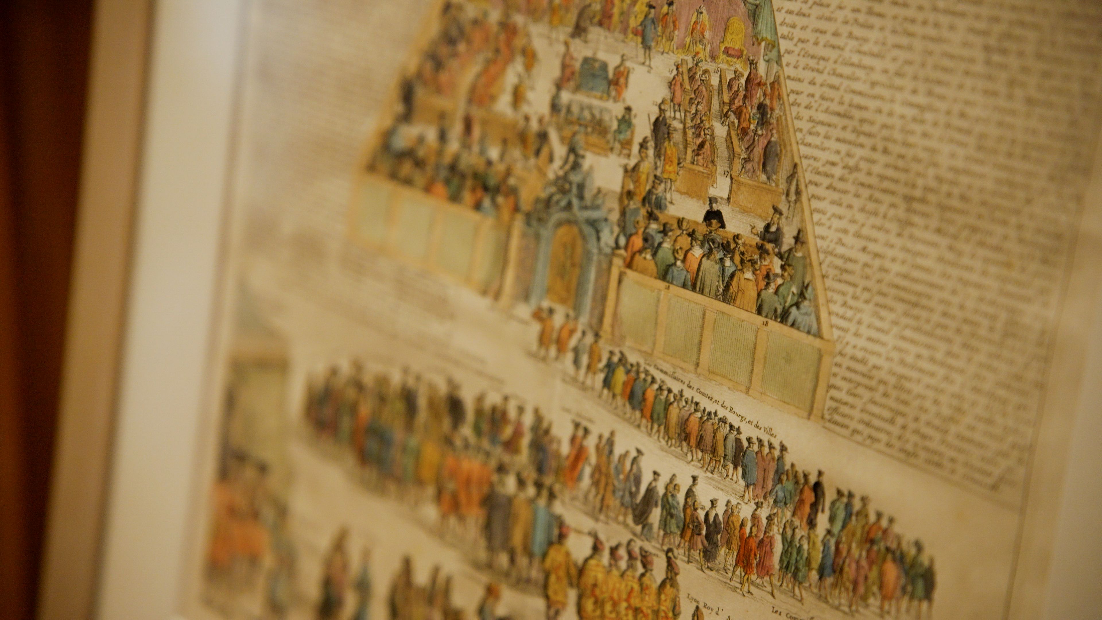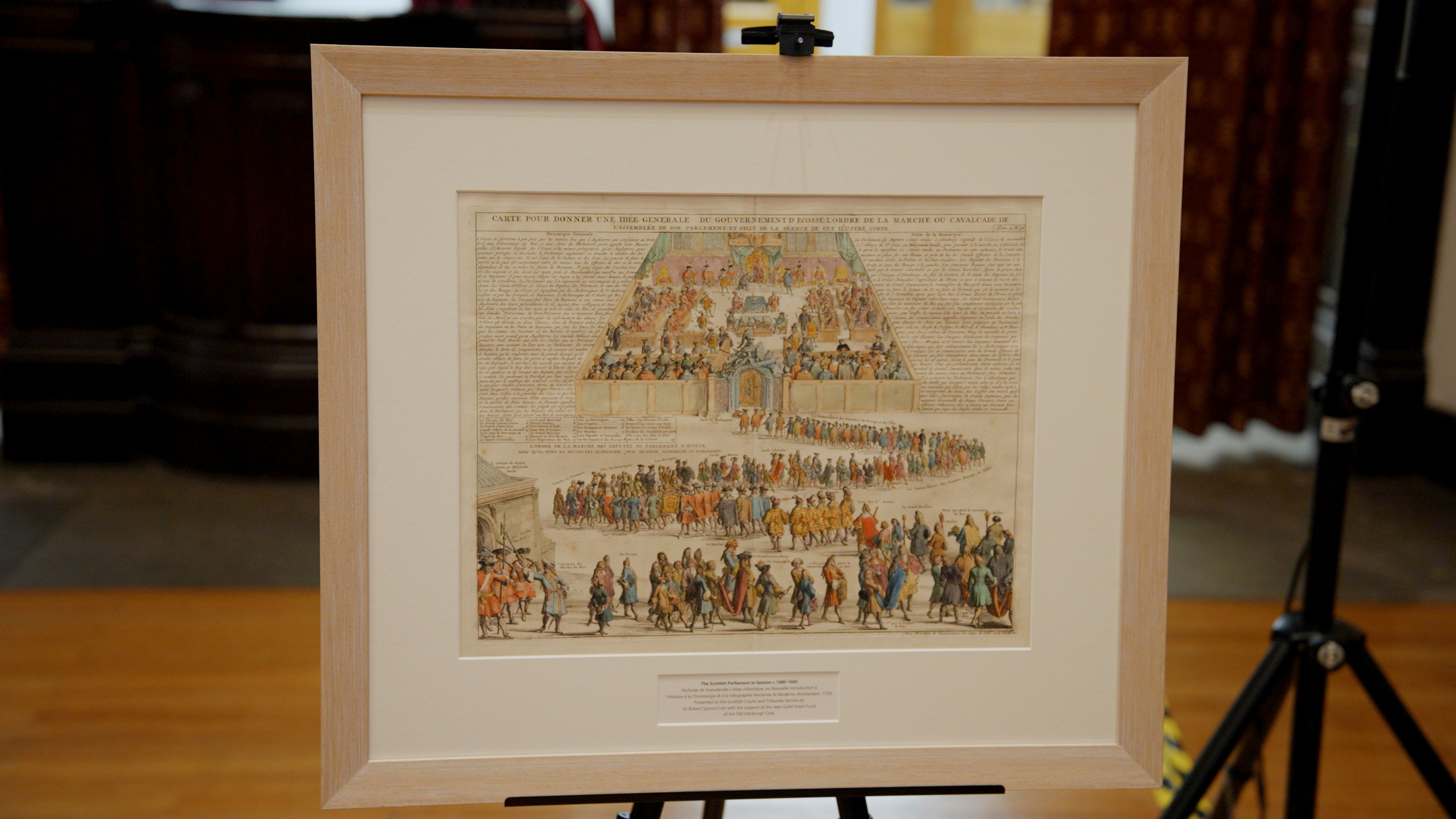 The print, which appeared in Nicholas de Gueudeville’s Atlas Historique, is particularly significant because there is limited information and very few images of the Scottish Parliament from its time sitting in Parliament Hall.